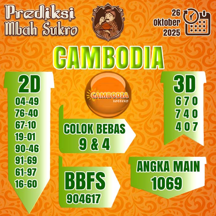 PREDIKSI MBAH SUKRO CAMBODIA MINGGU 26 OKTOBER 2025