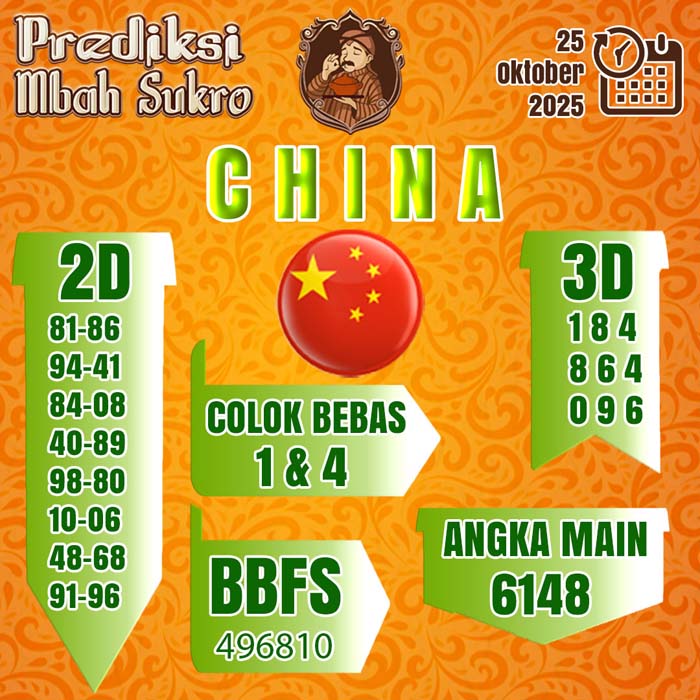 PREDIKSI MBAH SUKRO CHINA SABTU 25 OKTOBER 2025
