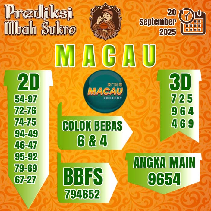 PREDIKSI MBAH SUKRO MACAU SABTU 20 SEPTEMBER 2025