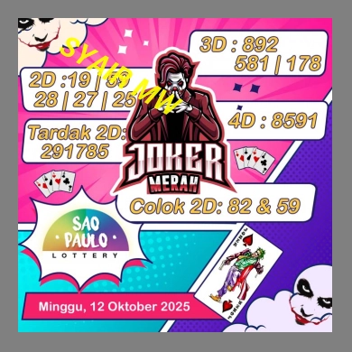 Karena banyaknya syair yang beredar, kami menghimbau kepada seluruh member setia untuk selalu mengecek ulang ramalan syair SAO PAULO yang kami update setiap saat. Ikuti juga keluaran SAO PAULO hari ini ataupunĀ live pools SAO PAULO 6DĀ hari ini dari kami. Kunjungi juga situs baru kami Syair MW yang lbh menarik dan dapat membantu anda.